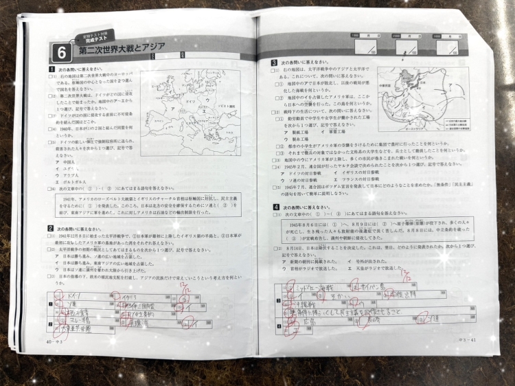 結果、社会のテスト対策プリントでは全ての単元で満点!本人も「やればできるんだ」と自信を取り戻しました。