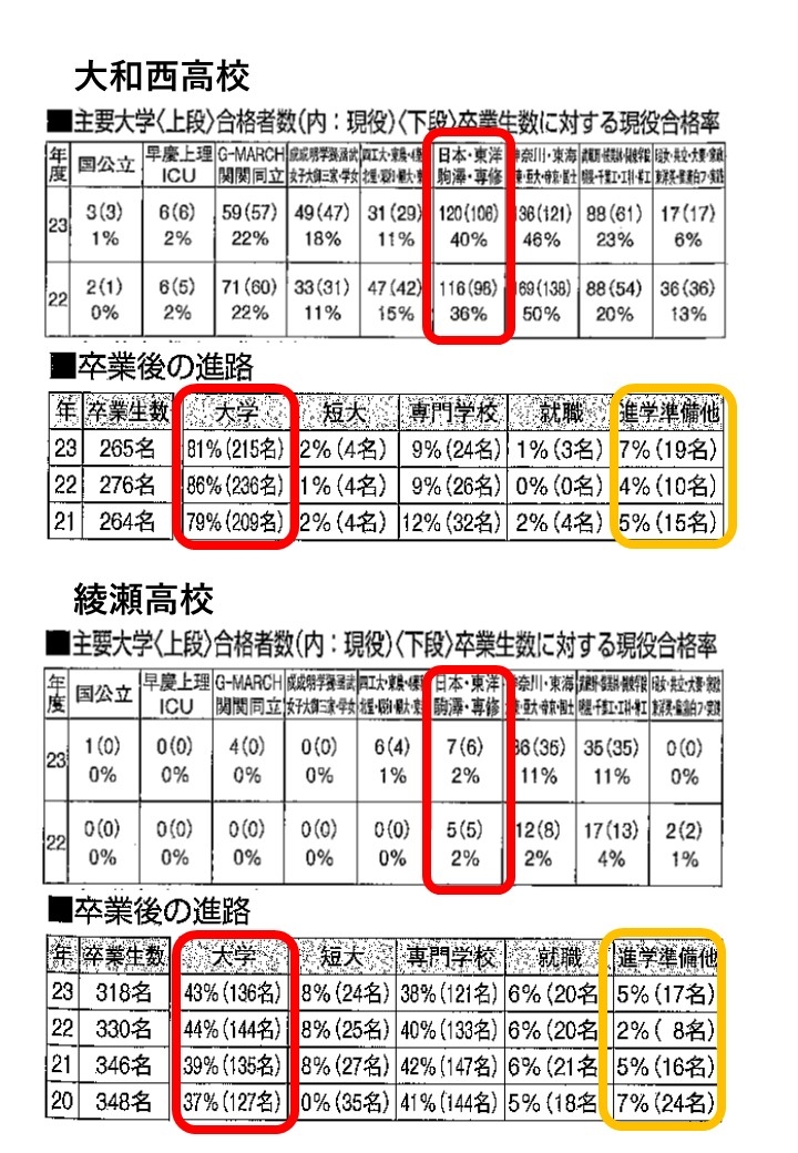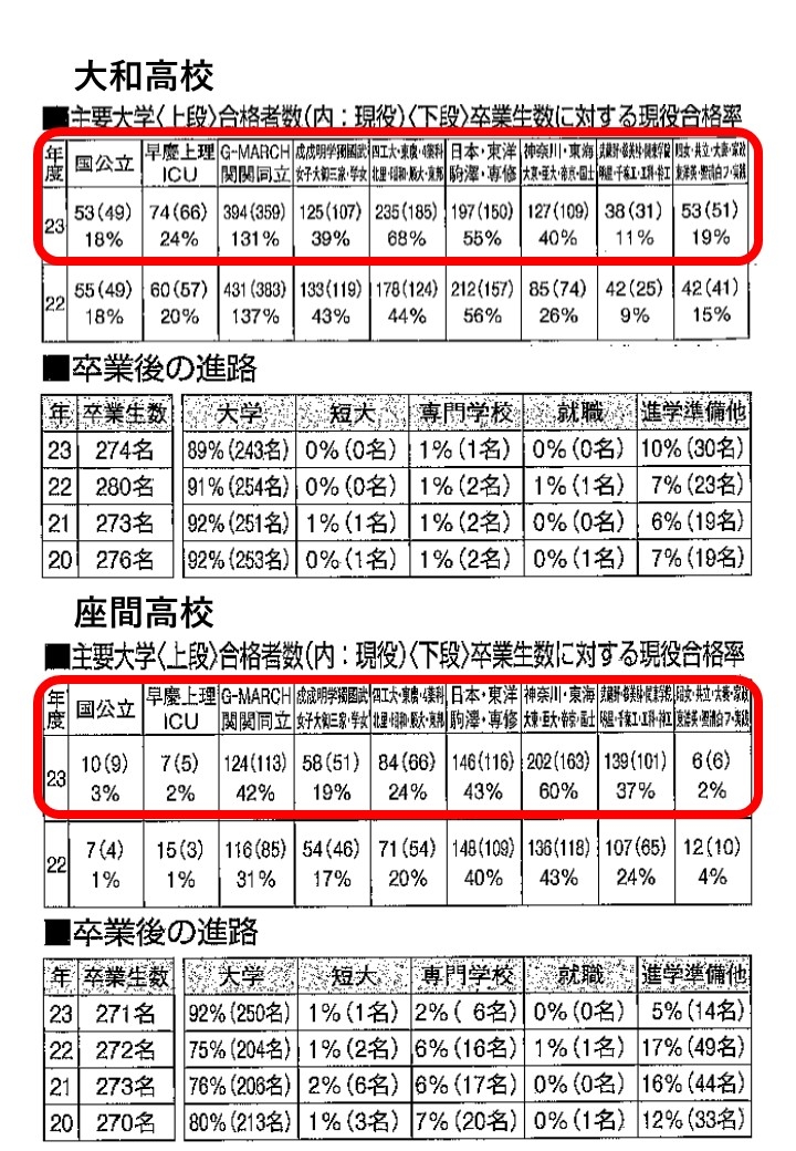 大和高校と座間高校のデータから