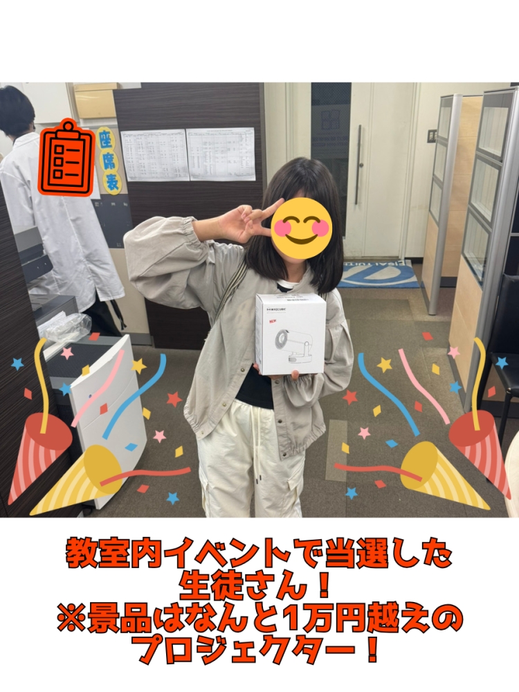【生徒の声】◆教室の雰囲気が明るくなった。授業中の先生の声が大きくなった気がする。(和光高校2年男子)◆なんか良くなってる気はする。(←?)(相模原中等4年女子) ◆塾長がブースまで来る回数が増えて、びっくりする回数も増えた(つきみ野中2年女子)