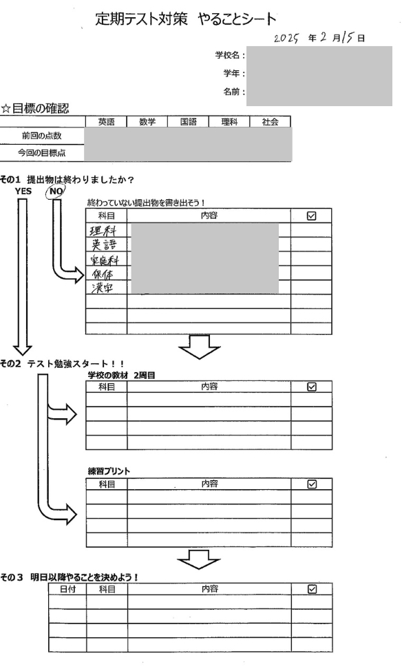 まずは「やることシート」を記入していきます。これは対策の日以外でも使えるものになっています♪
