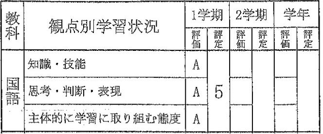 この3点をABCで評価をし、それらを総合して1~5までの成績とします。