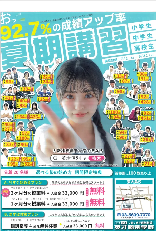 本日は英才個別学院大島校の夏期講習のカリキュラムについてお話をさせていただきます。