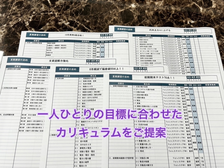 達成の為に必要な夏期講習の内容を提案させていただきます。