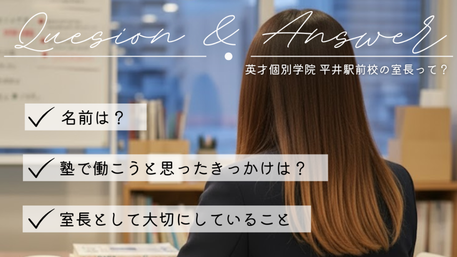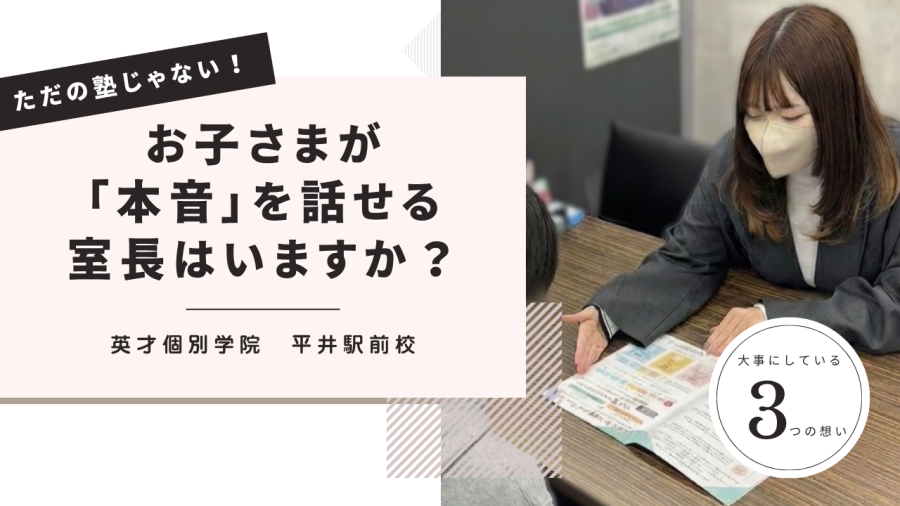 英才個別学院 平井駅前校は、平井駅徒歩1分の通いやすい立地に新規開校。一人ひとりの学力・目標に合わせた完全オーダーメイドカリキュラムで、定期テスト対策から中学受験・高校受験・大学受験まで幅広くサポートいたします。経験豊富な講師陣が、お子様の「わかる」を「できる」に変える指導をお約束。無料体験授業・学習相談も随時受付中ですので、江戸川区平井エリアで塾をお探しの方はぜひお気軽にお問い合わせください。