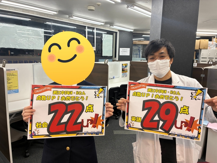 【渕江中3年】英語29点・社会22点アップ!おめでとう!