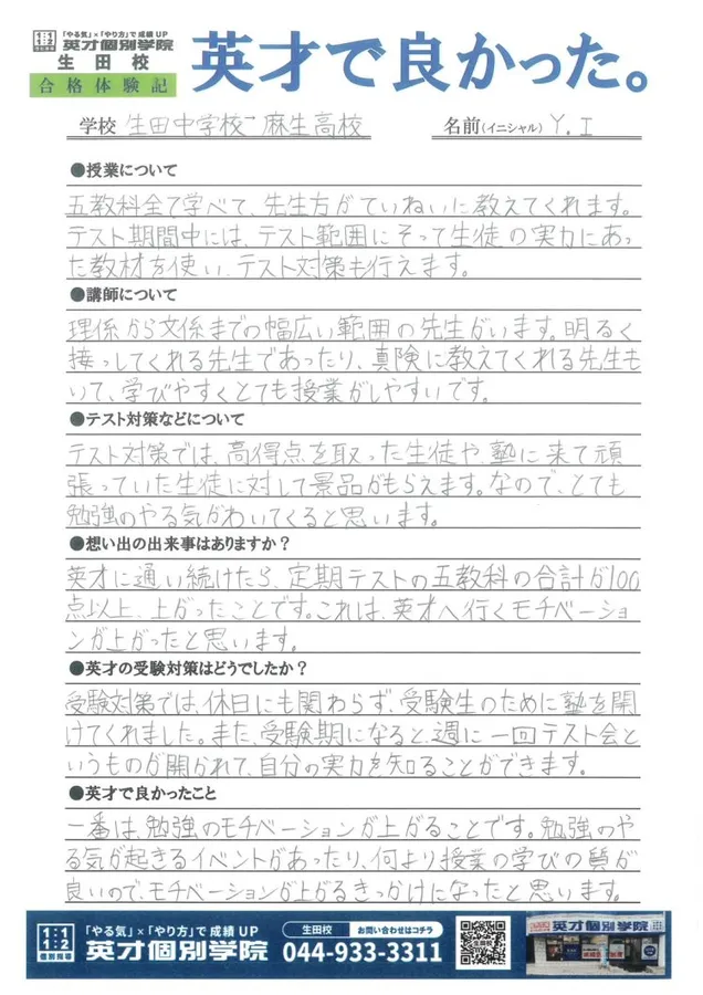 生田の個別指導塾 学習塾【英才個別学院 生田校】