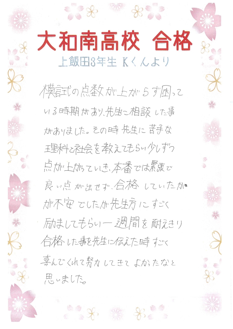 大和南高校合格!K君より