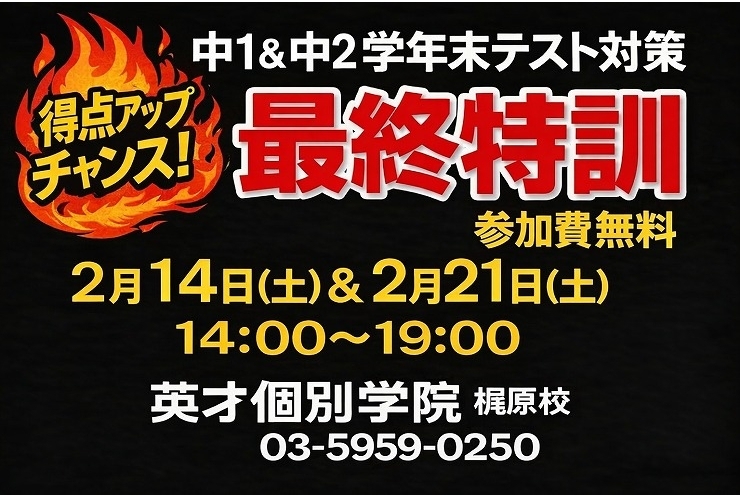 今年も残すところわずかとなり、慌ただしさを感じる季節になりました。2学期期末テスト(第三考査)が終わり、入塾のお問い合わせが増える時期です