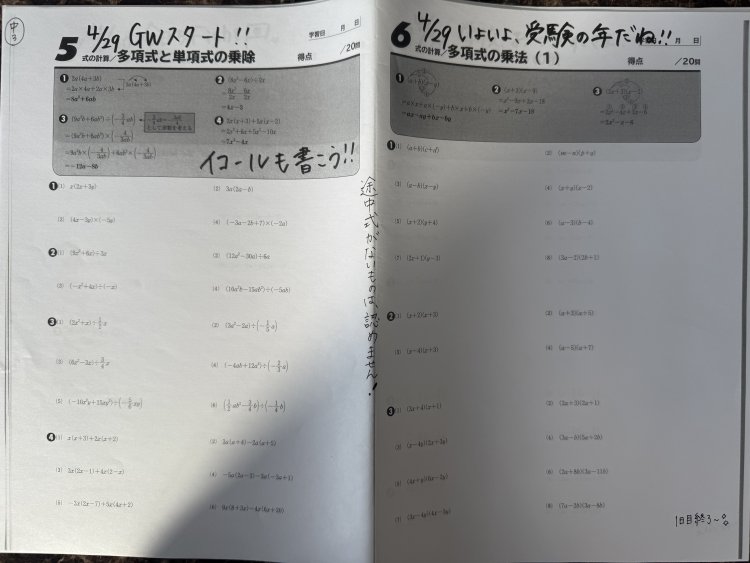 GWに積み上げた、計算力と単語力は、定期テストに向けて確実に点数アップに繋がります✨