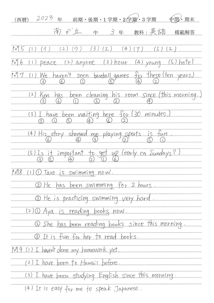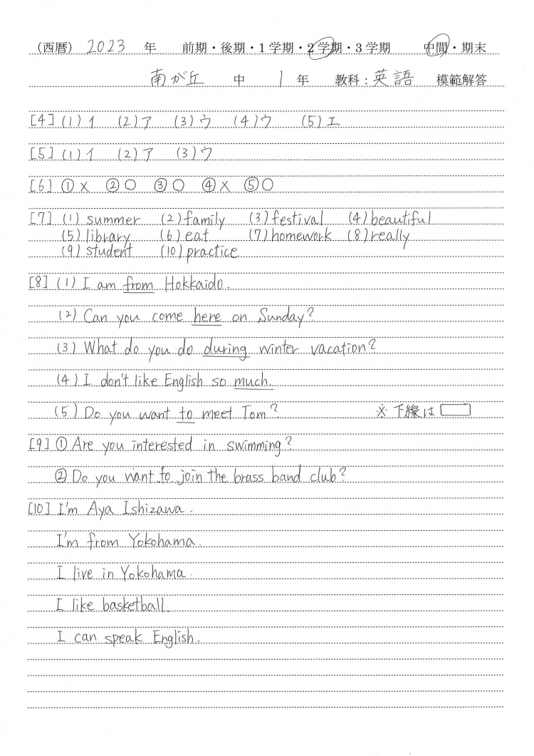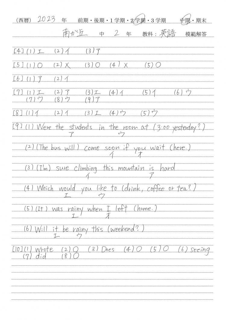 【南が丘中】2023年度2学期中間テスト~英語~【解答速報】