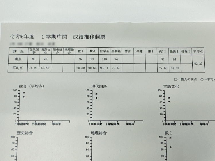 ほんの一部ですが、高1生の成績を紹介します✨