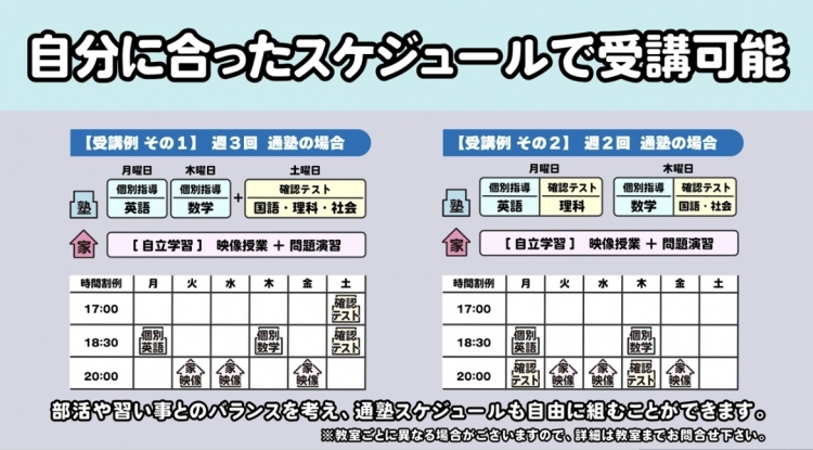 部活や習い事とのバランスを考え、通塾スケジュールを自由に組むことができます!