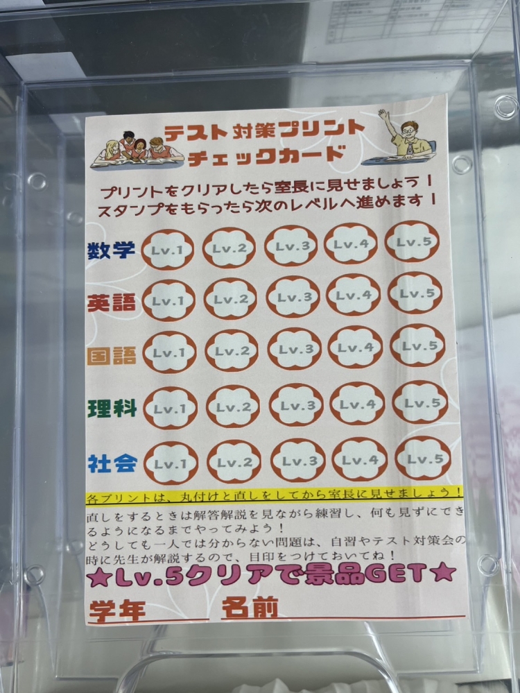 ↓このようにレベル別に分けられたテスト対策プリントを解いていきます!