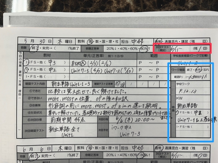 塾での授業はその時点でテスト範囲の内容は履修済みの状態を作ります。