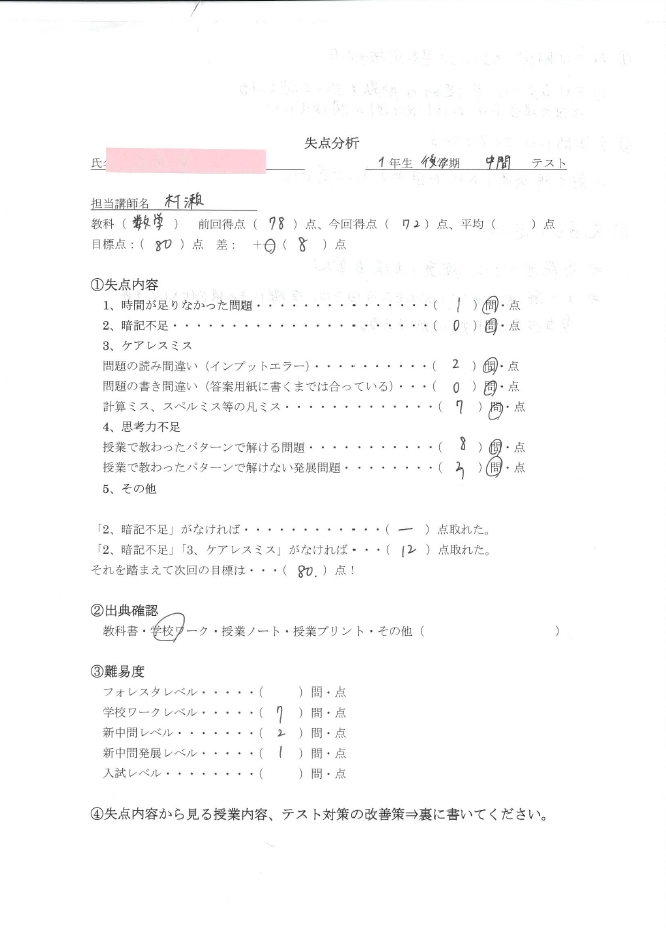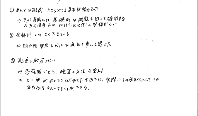 定期テスト結果を一緒に振り返りこれからの学習へのアドバイスをさせていただく