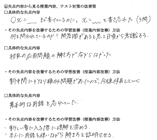 しっかり振り返りをして、次のテストに向けて授業内容で