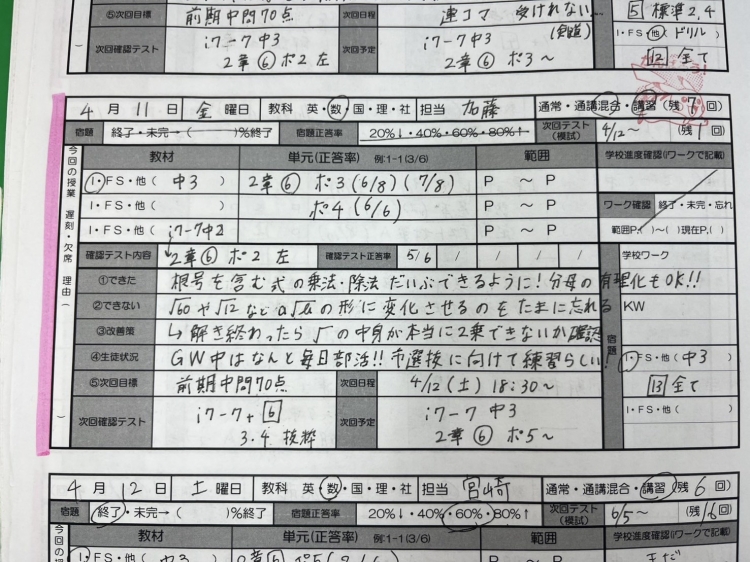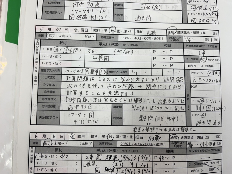.引継書を通して講師間や講師と室長間での連携を取ります!