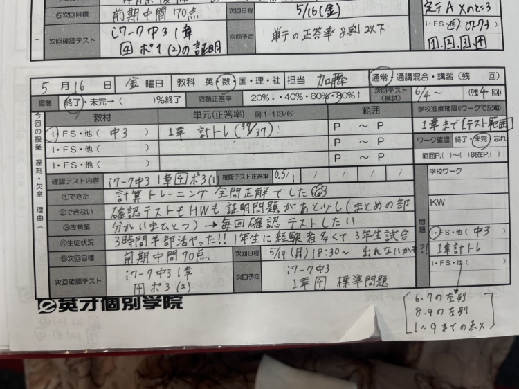 授業とは別で室長課題を出して取り組んでもらったりしました💪