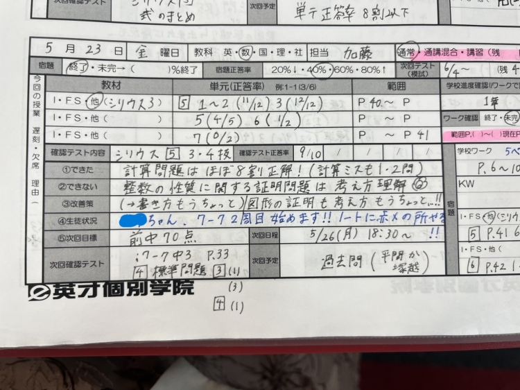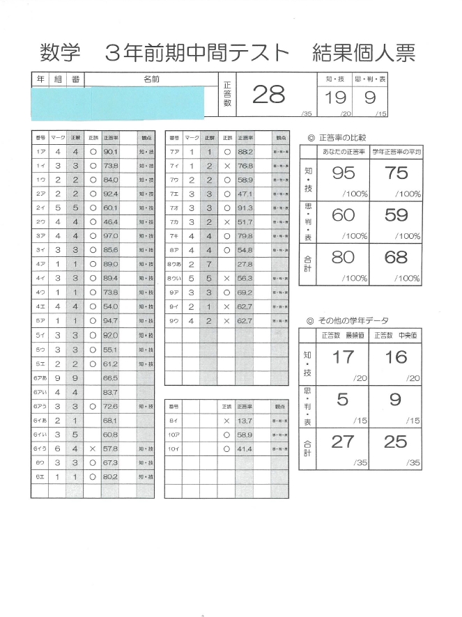 実際に前回のテストで数学40点アップした塚越中のMちゃんについて