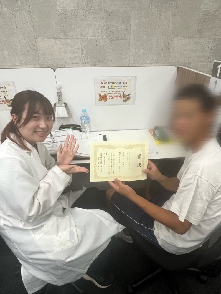 ただ、個人的には生徒の中で1番成長したのではないかと思っています。夏期講習で難易度の高い問題に挑戦したり、自習も主体的に取り組む姿が見受けられました!