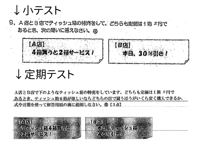 「小テスト」で実施した問題が「定期テスト」で再度出題されます。