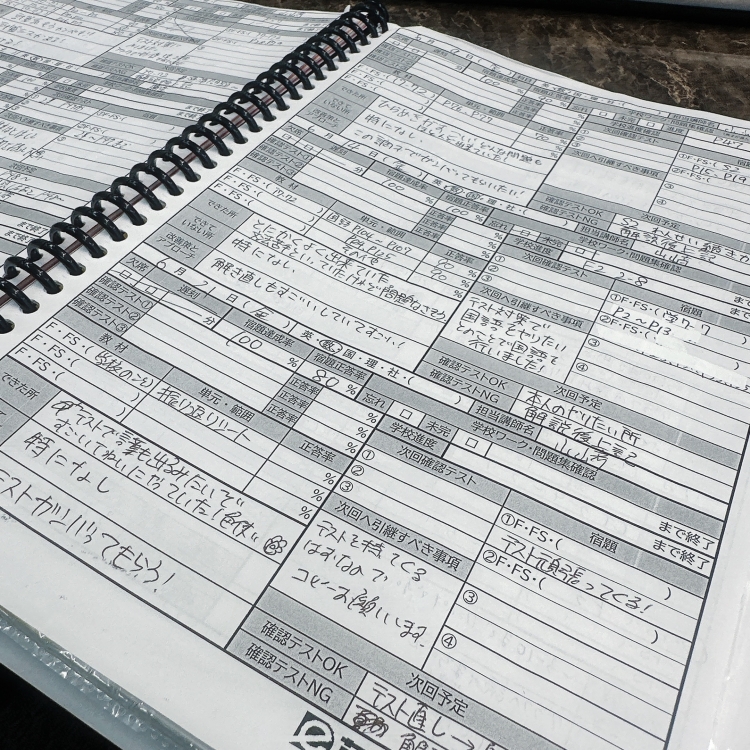 ↑のように、毎回の授業で、生徒さんの苦手とする単元や、生徒さんの授業時の様子などを記録して、講師間での共有を図っています。