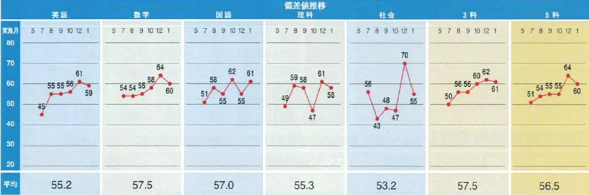 室長より:秋の段階ではまだ点数が伸び悩んでいましたが、単元別に対策を練り、「どこで得点を稼ぐか」を集中的に絞り込みました。戦略的な取り組みが、11月下旬の偏差値48からの大逆転(偏差値60到達)を生んだのです。