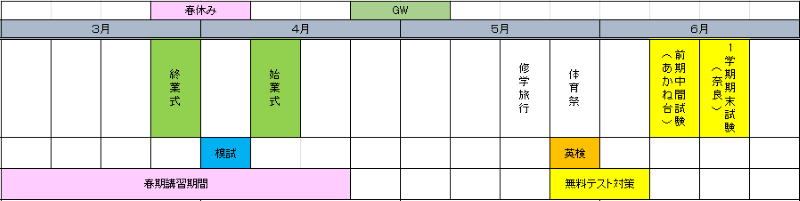 2つ目の理由も1つ目と繋がるところもありますが、ゴールデンウイーク明けには体育祭に加えて、2,3年生は自然教室、修学旅行などの宿泊行事が控えていたり、1年生は部活動も本入部となります。そんな中で、定期テストまで1ヶ月を切ってそろそろテスト勉強をという雰囲気に周りもなりにくく、テスト勉強へのスタートが遅れやすくなるためです。