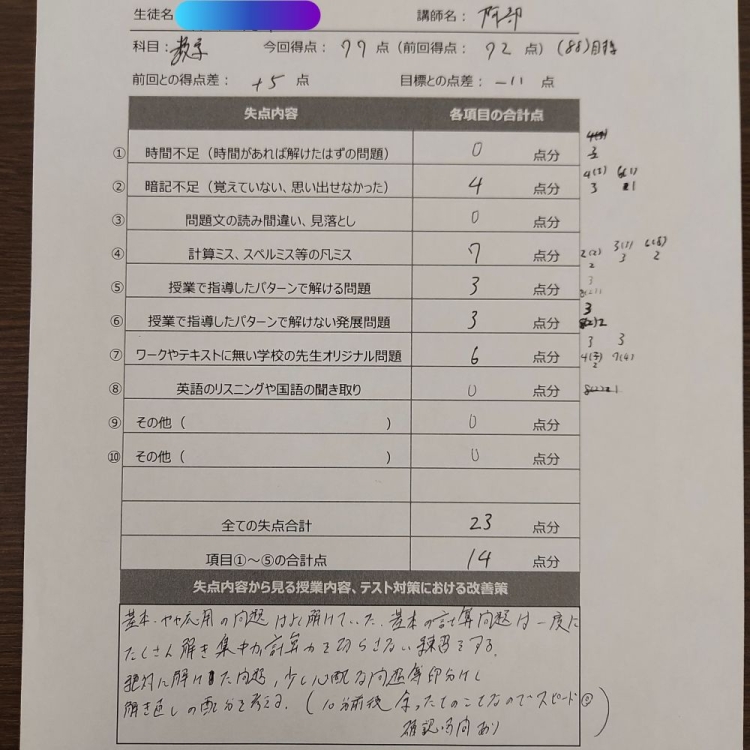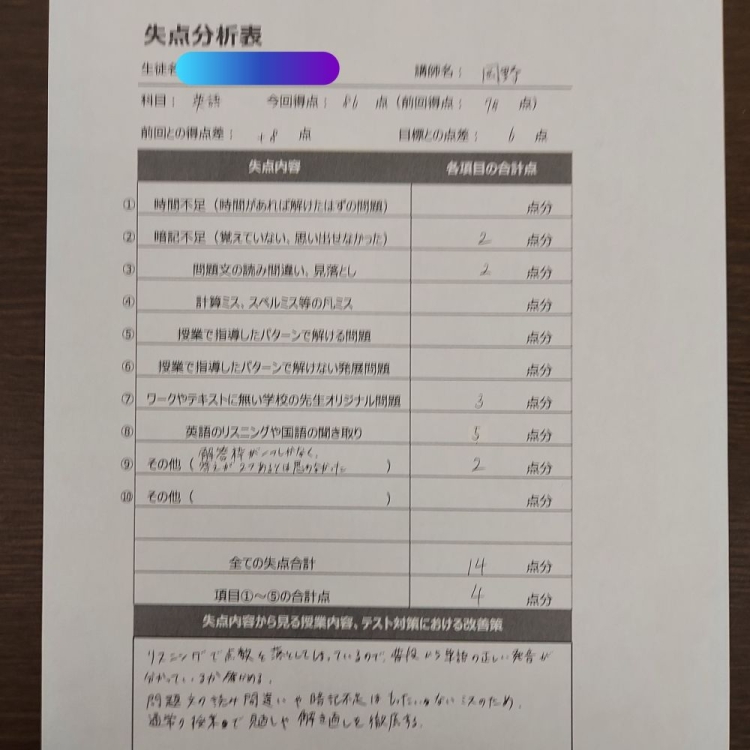 決して聞き取りや本人の記憶している点数を信用していないという訳ではなく、次のテストで点数アップを目指すのに非常に重要だからです。