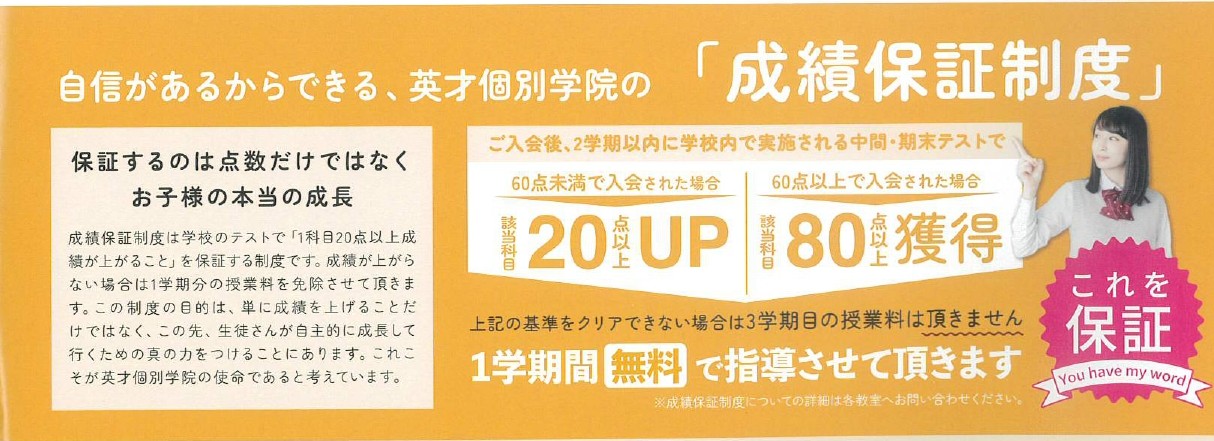 成績UPに自信があるので、できる制度です😊