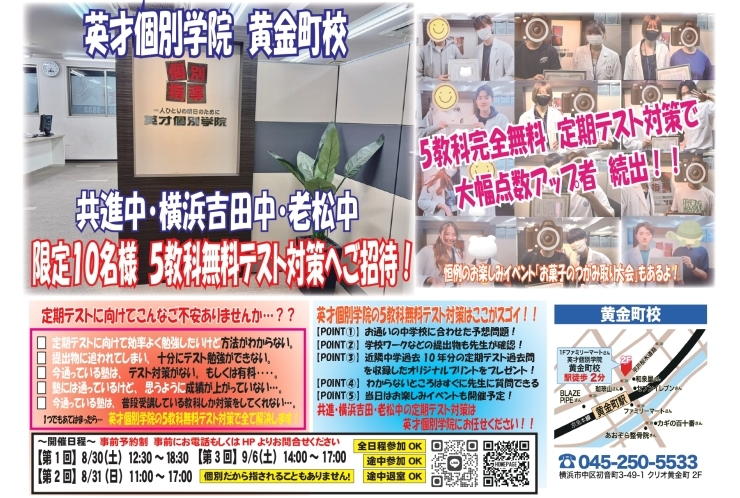 共進中・老松中・横浜吉田中エリアにある個別指導塾