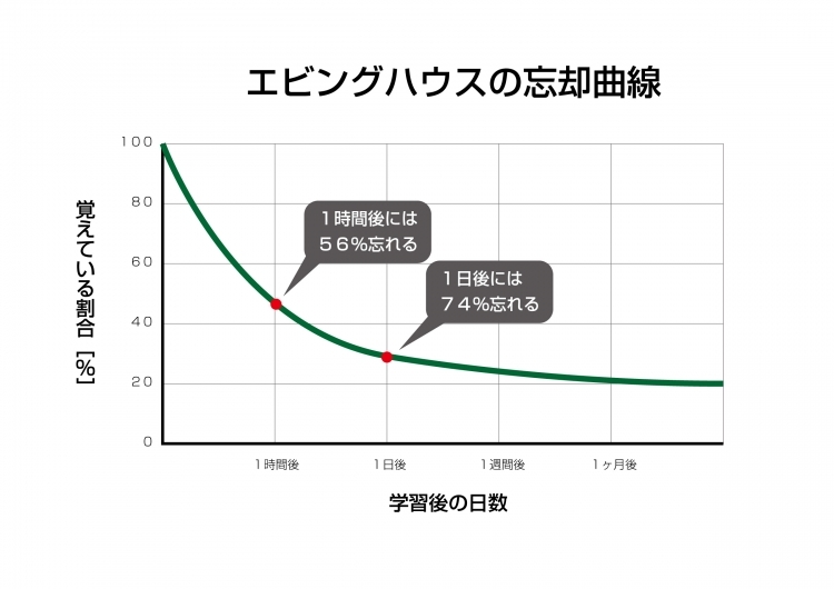 皆さんの中には忘却曲線について、聞いたことがある方もいるのではないでしょうか。