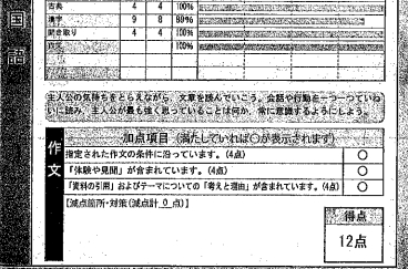この春に国語の対策を実施した生徒の例です。作文12点満点中12点!!!