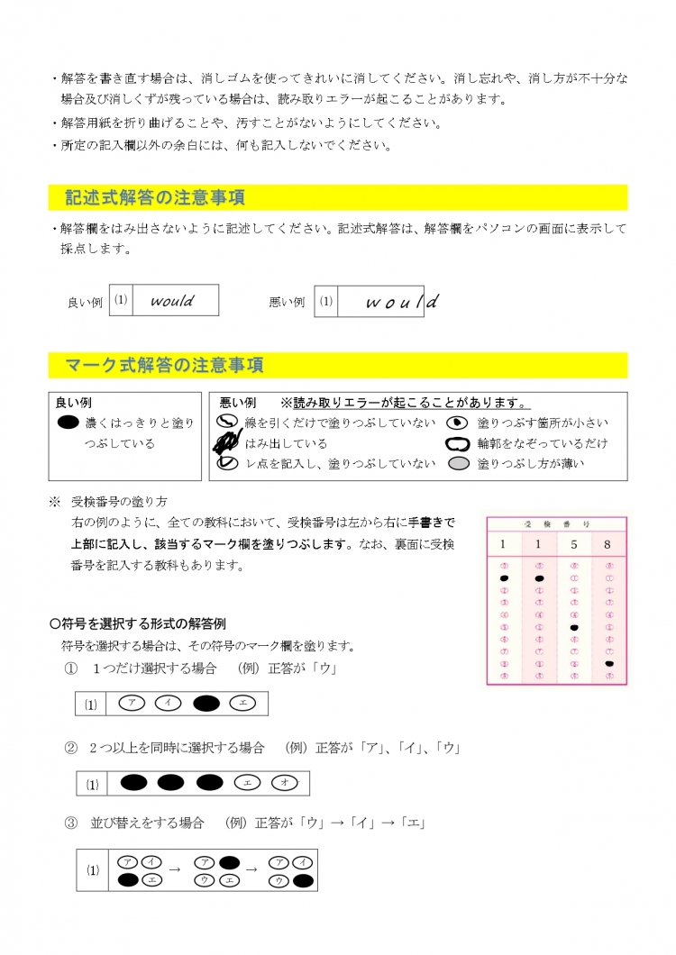 それに伴って、マークシート式+記述の注意点をまとめました。ご確認ください。