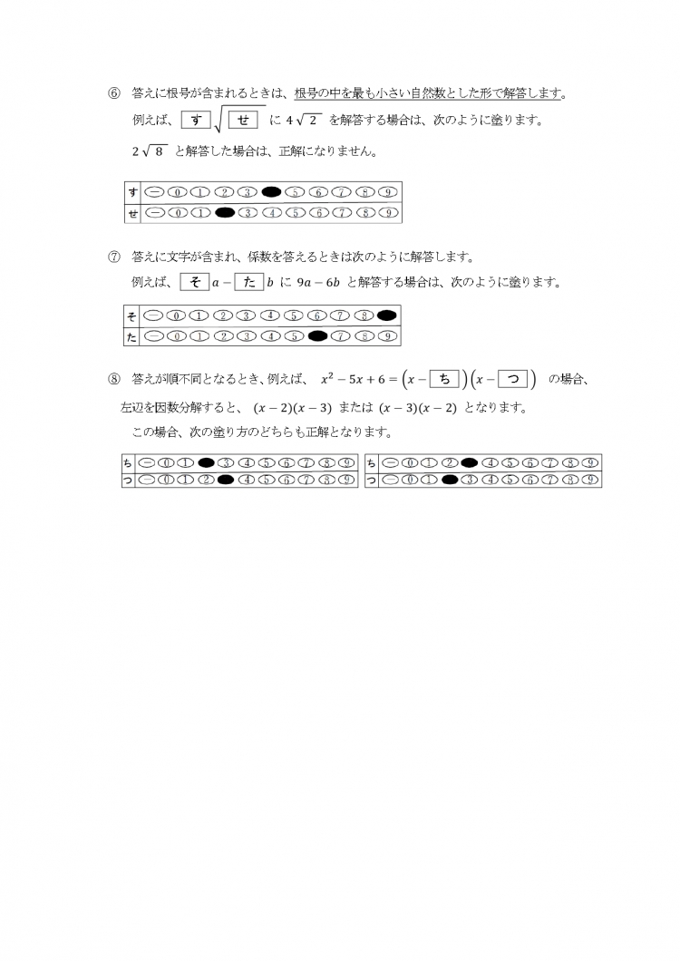 ⑥解答用紙は裏面も使用することがある。