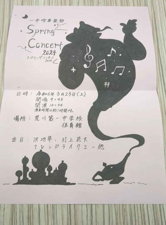荒川一中吹奏楽部のスプリングコンサートお誘い!