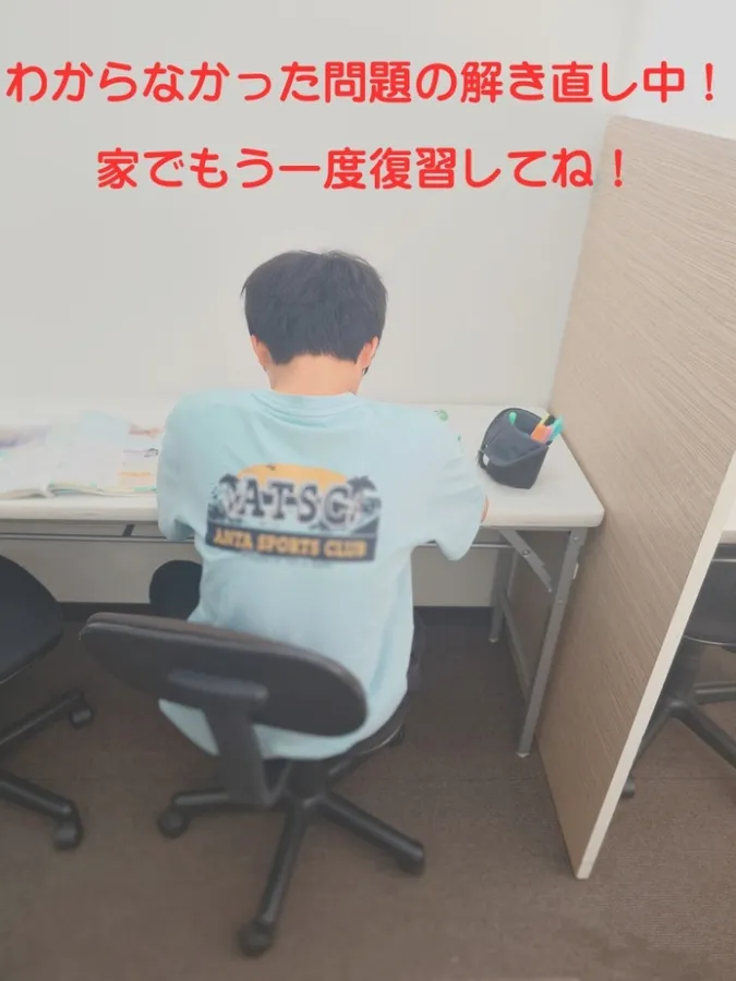 質問対応でモヤモヤを解消!演習後は、わからなかった問題や不安な単元について個別に対応。一人ひとりの「なぜ?」に寄り添いながら、 理解の定着を図りました。終わった後が大事!復習にも取り組んでいます対策会が終わった後も、多くの子どもたちが教室に残って復習に取り組んでいました。「もう一度あの問題をやってみよう」「教えてもらったポイントをまとめよう」そんな姿が見られるのは、とても頼もしいことです。