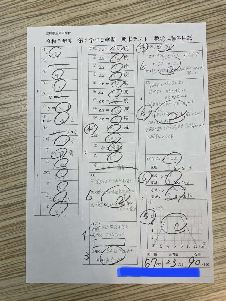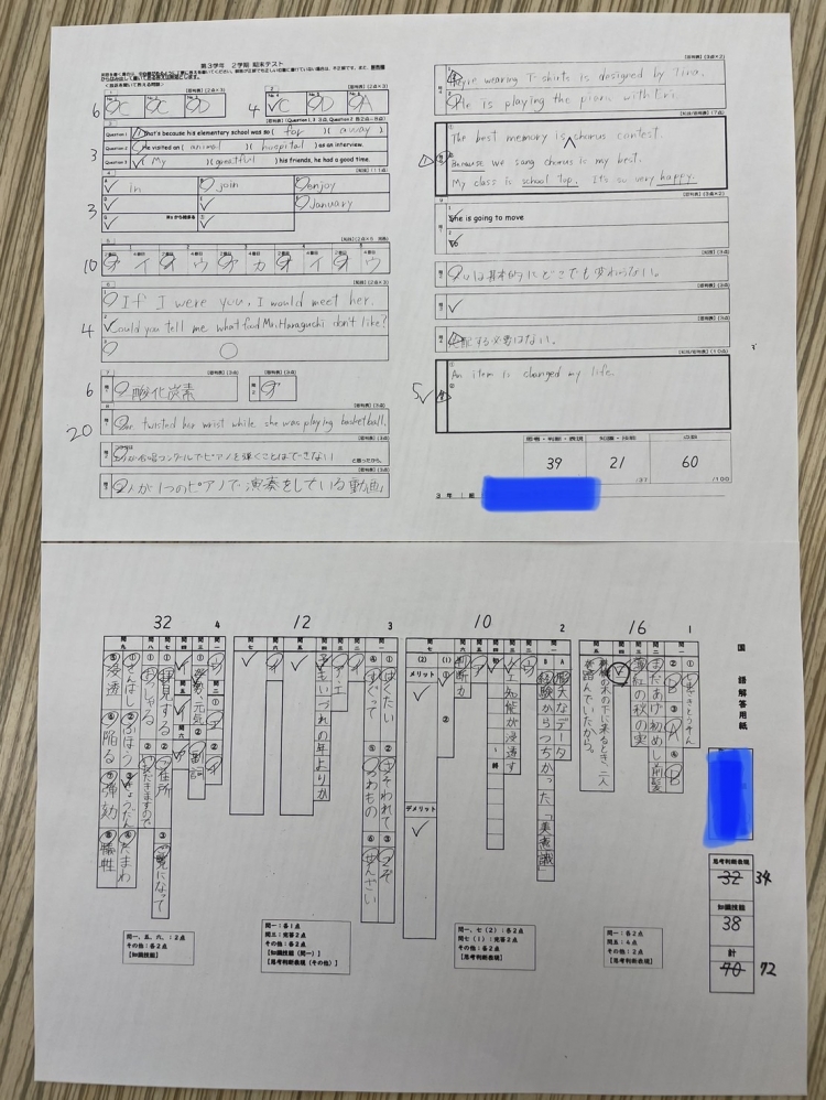 こちらの生徒はどんどん点数が上がっていき今回なんと90点!生徒もドヤ顔でした!