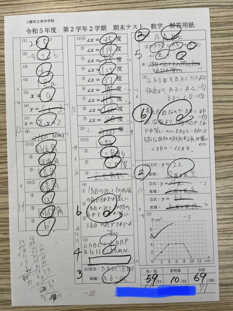 入塾した際は35点でしたが次のテストで73点!そして今回!素晴らしいです!