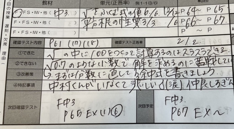 数学も同じように前回の内容を確認テストで出しています!