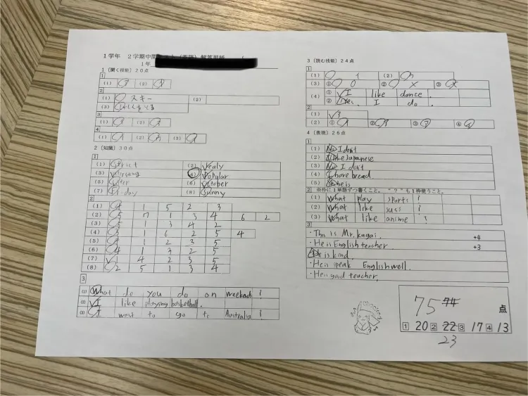 7月に英才に来ていただき初のテストで英語10点UPしました!