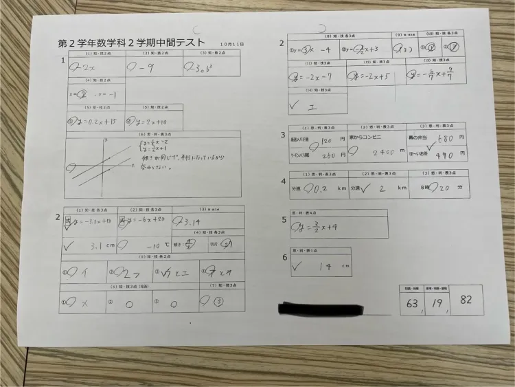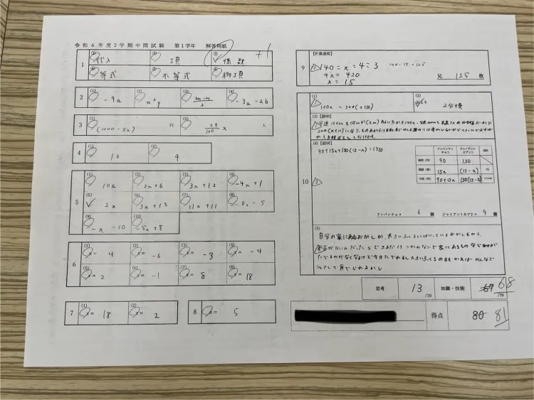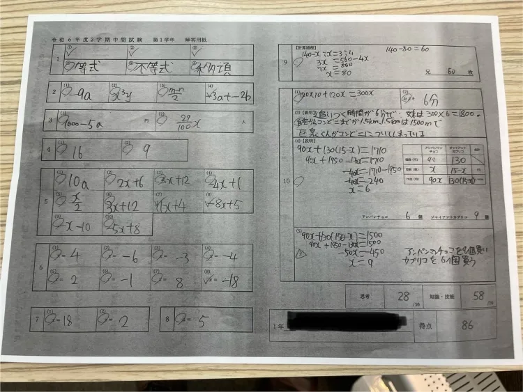 こちらは英才に入り、初めてのテストでした!