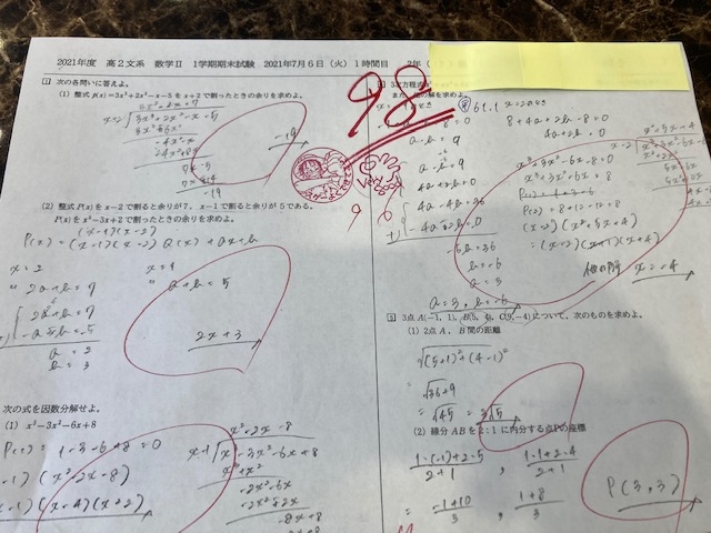 高校生も大健闘!!数学Ⅱ98点おめでとう!