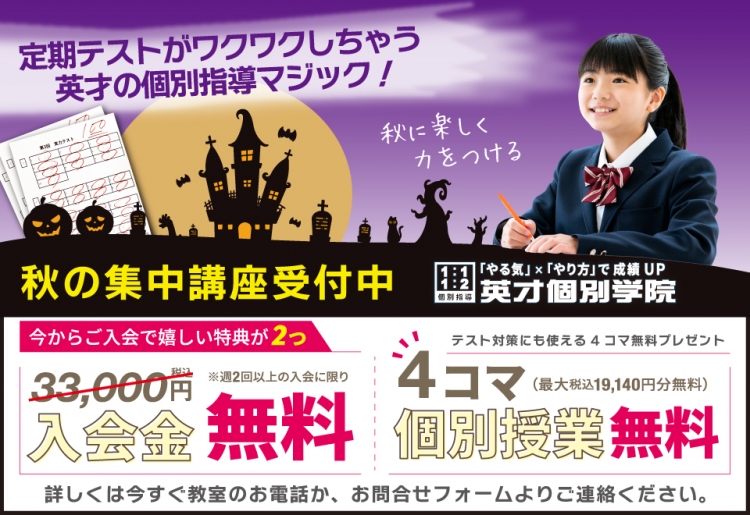この機会に英才で勉強して、2学期の内申点を上げましょう!