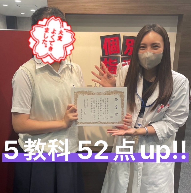 2年生 Yさん 数学97点・理科91点&5教科430点達成!!