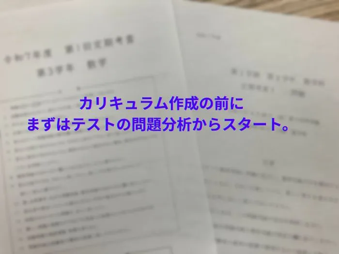 やみくもに全範囲を勉強するのではなく、まずは学校の定期テストの過去問を慎重に分析しました。ワークから出題される問題が多いのか、それとも配布されたプリントからなのか。プリント類は生徒さんにすべて持参していただきました。