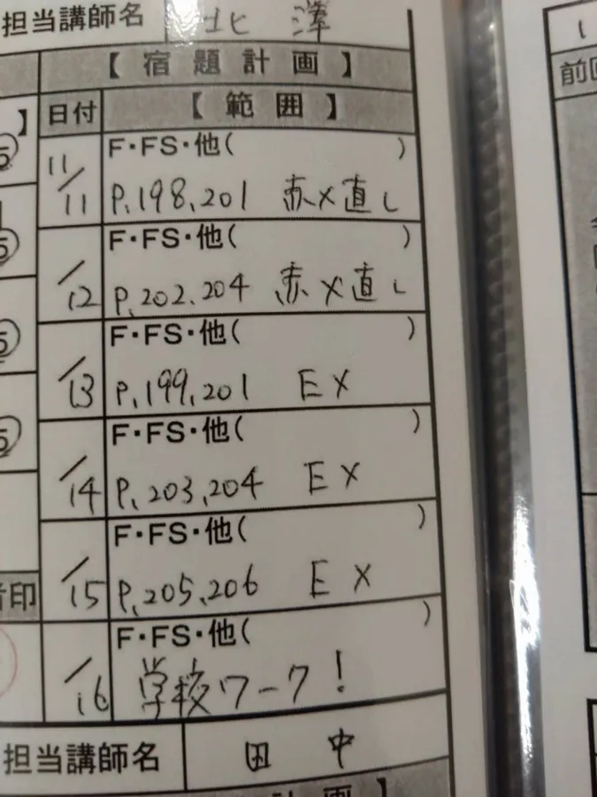 英才個別学院では、生徒さん一人ひとりに日割りの宿題をお出ししているので