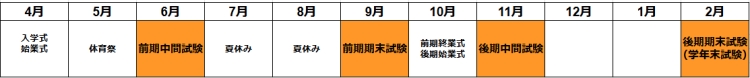 入学後、健康診断や体育祭などから、すぐに前期中間試験があります。