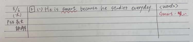 先に縦線を引いて日付、ページを書くことや、分からなかったワードをまとめて意味も書いておくなどルールもはっきりさせておきましょう。