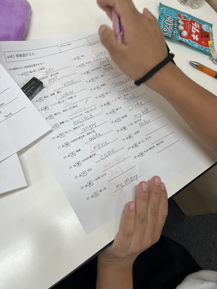 西中原中2年Kさんは英単語の対策プリントを使って勉強してくれていました。